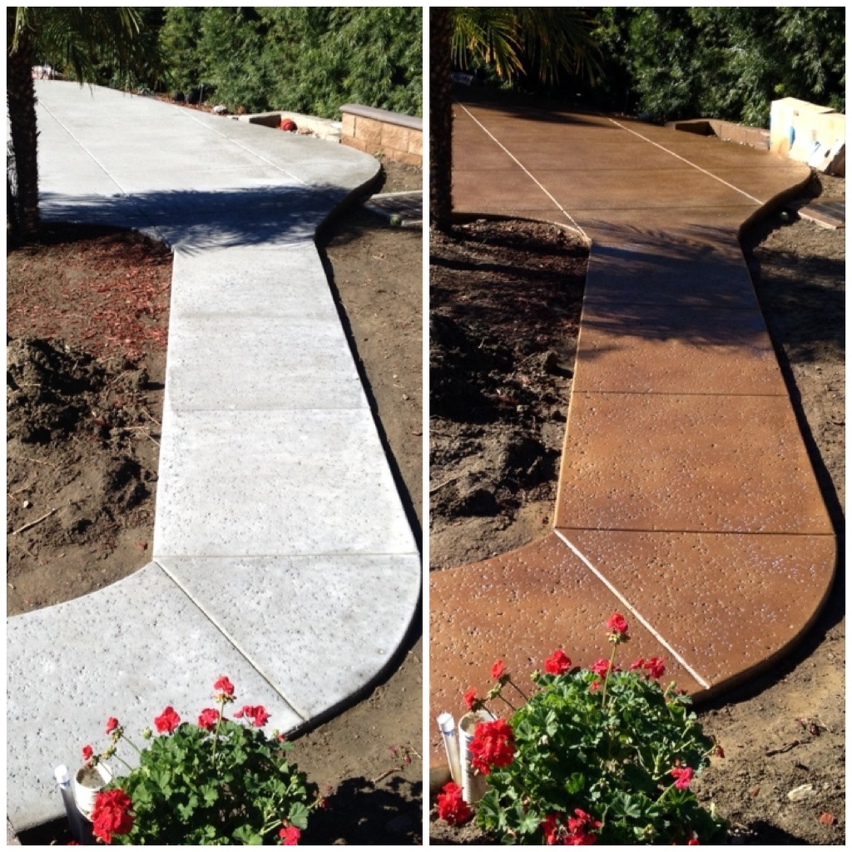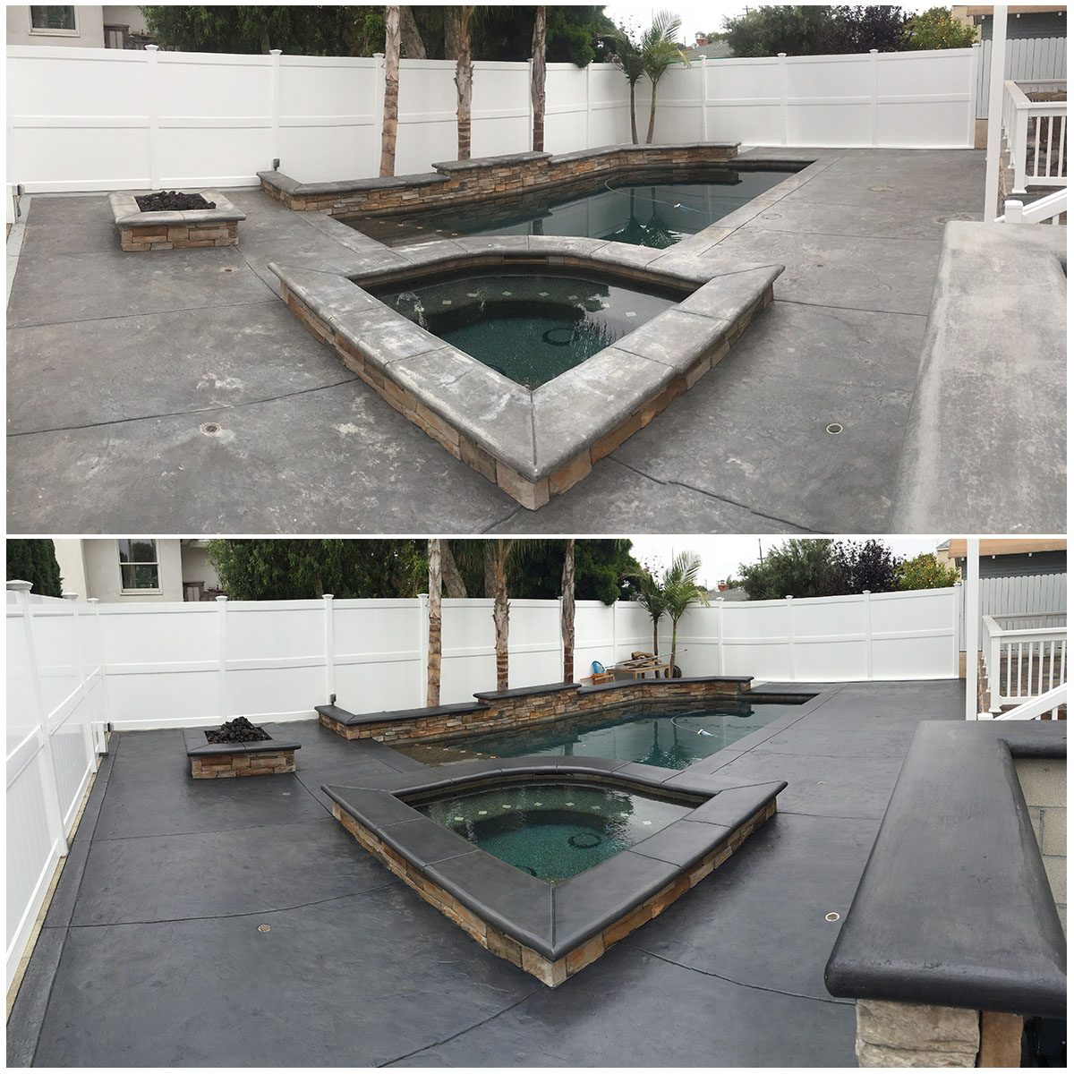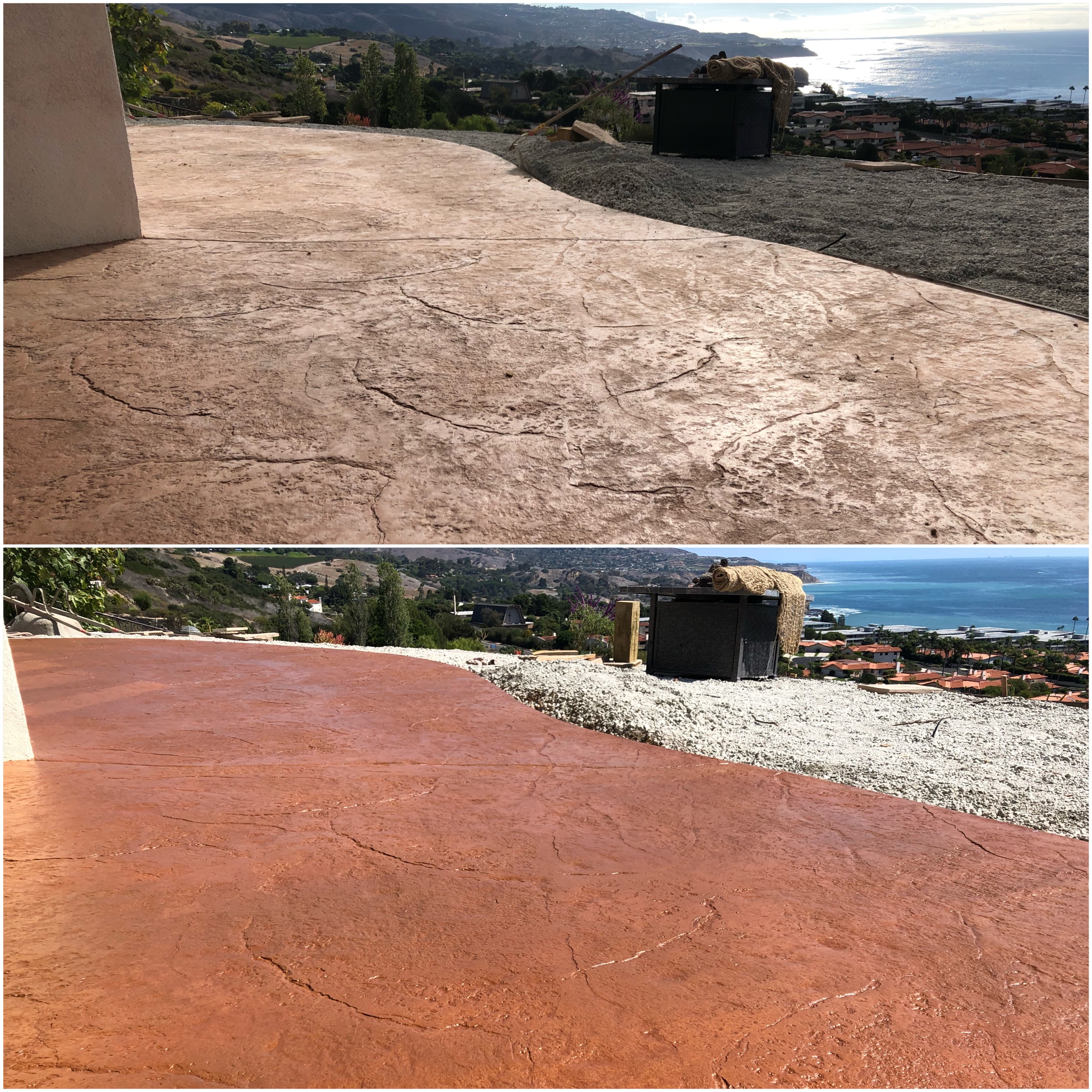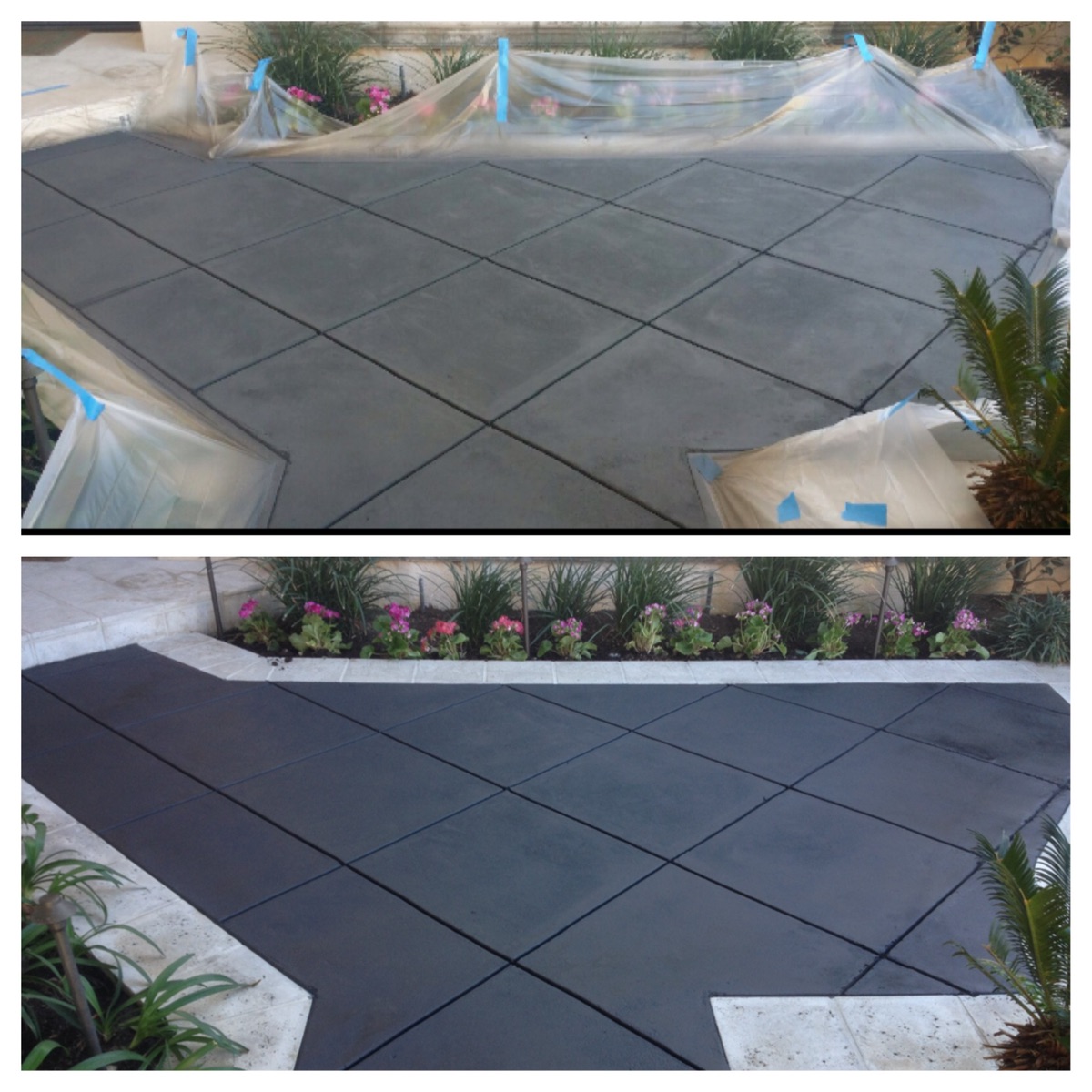 Our three-step concrete staining process ensures that the final results look great and last for years to come. Other companies may simply add a thin concrete texturing coating that looks good initially but essentially just sits on the surface and can easily flake, fade, or peel.