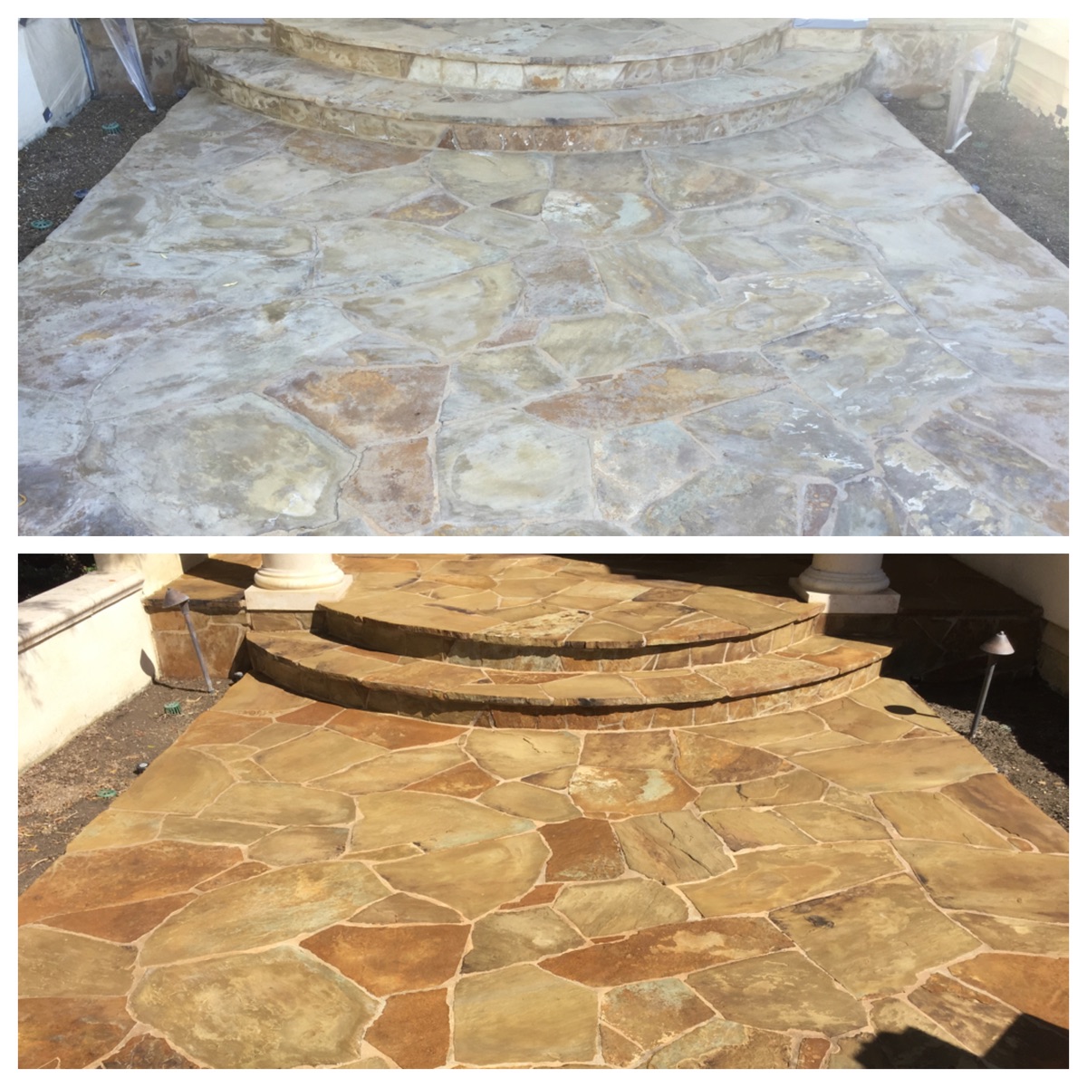 Fuller Stone Care uses stains that penetrate the pores of the concrete. They soak into those pores to create a bond that allows the beautiful results to last for years to come. We can help you with exterior or interior concrete – contact us today!